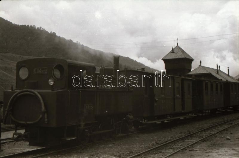 Leírás: cca 1935 Kisvonat szerelvény és mozdony ismeretlen állomáson, 5 db szabadon felhasználható vintage negatív, 24x36 mm