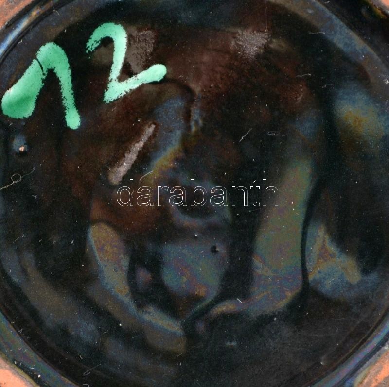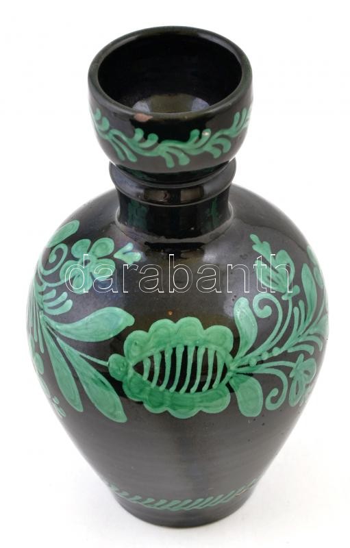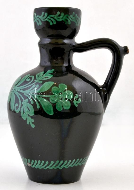 Leírás: Festett mázas kerámia korsó, apró lepattanással, m: 24 cm