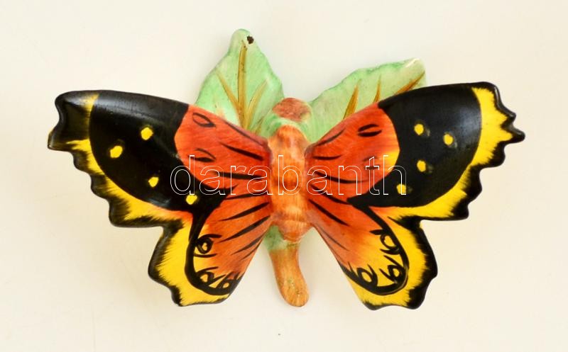 Leírás: Kerámia pillangó, kézzel festett, jelzés nélkül, hibátlan, 10x7 cm