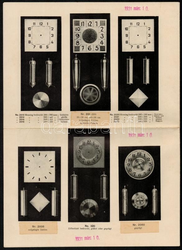1931 Neue moderne Hausuhren-Garnitur - új modern otthoni órák katalógu... https://www.darabanth.com/hu/306-Gyorsarveres/306.0/Festmeny-mutargy-papirregiseg-egyeb/Nyomtatvanyok~100030/1931-Neue-moderne-Hausuhren-Garnitur--uj-modern-otthoni-orak-katalogusa-kepes-illusztraciok~II1655296