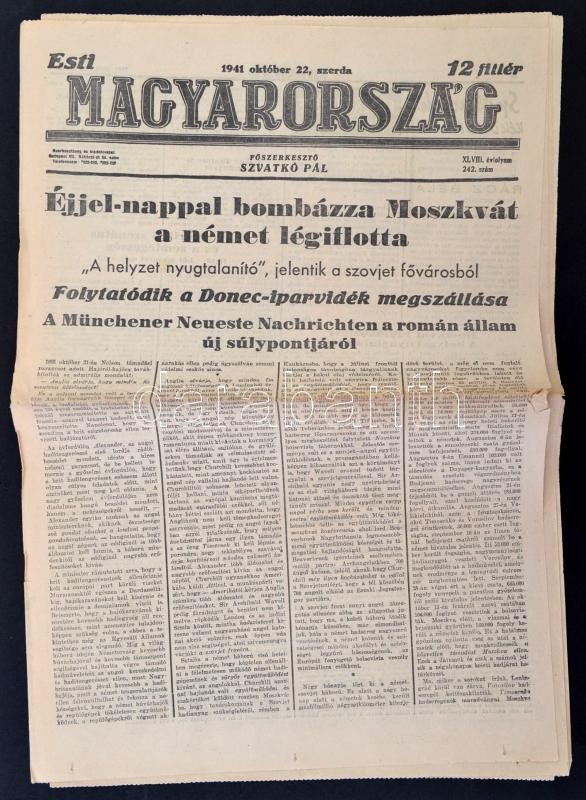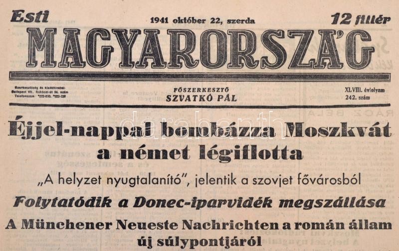 Leírás: 1941 Az Esti Magyarország XLVIII. évfolyamának 242. száma, háborús hírekkel