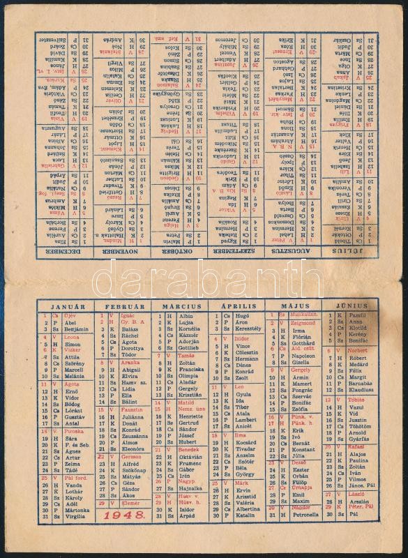 Leírás: 1948 a Debreceni Tudományegyetemi Nyomda újévi naptára, foltos