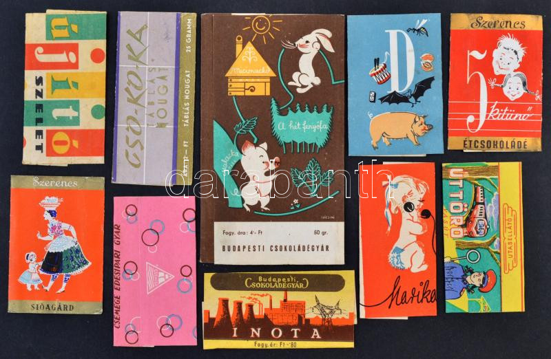 Leírás: cca 1960-70 Magyar, retró csokoládépapírok, különböző méretben, 10db / chocolate papers