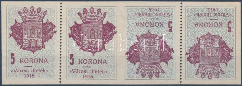 Leírás: 1916 Székesfehérvár városi illetékbélyeg 5K fordított képállású, középen fogazatlan 4-es csíkban RR! (72.000)