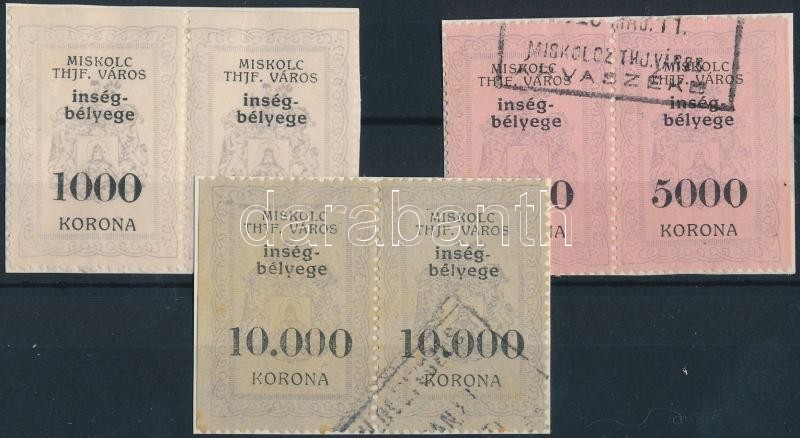 1923 Miskolc városi Ínség bélyeg sor párokban (18.200) https://www.darabanth.com/hu/306-Gyorsarveres/306.0/Festmeny-mutargy-papirregiseg-egyeb/Okmanybelyegek~100018/1923-Miskolc-varosi-Inseg-belyeg-sor-parokban-18200~II1605829