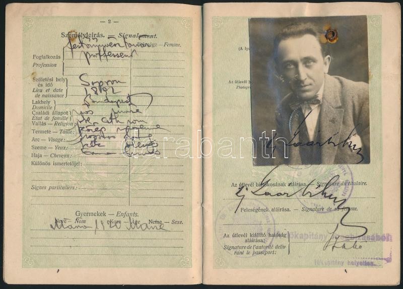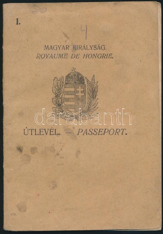 1927 Bp., A Magyar Királyság által kiállított fényképes útlevél / Hung... https://www.darabanth.com/hu/306-Gyorsarveres/306.0/Festmeny-mutargy-papirregiseg-egyeb/Okmanyok~100019/1927-Bp-A-Magyar-Kiralysag-altal-kiallitott-fenykepes-utlevel-Hungarian-passport~II1652568