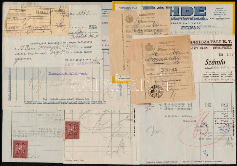 Leírás: 1930 Vegyes számla tétel, 42 db, többségük okmánybélyeggel