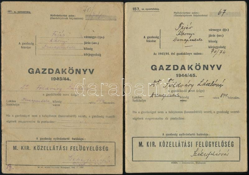 Leírás: 1943-1945 2db Gazdakönyv, Fejér megye, adonyi járás, Dunapentele, pecsétekkel, bejegyzésekkel.