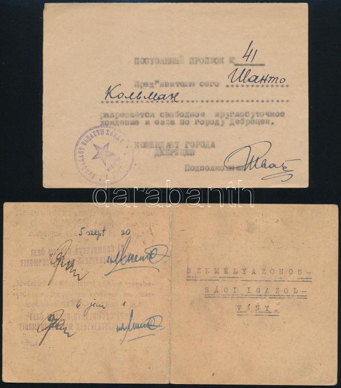 1945 Vörös Hadsereg számára dolgozónak kiállított igazolvány. https://www.darabanth.com/hu/306-Gyorsarveres/306.0/Festmeny-mutargy-papirregiseg-egyeb/Okmanyok~100019/1945-Voros-Hadsereg-szamara-dolgozonak-kiallitott-igazolvany~II1621208