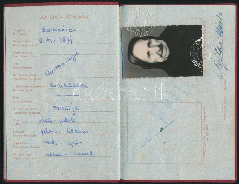 1958 Jugoszláv útlevél / Yugoslavian passport https://www.darabanth.com/hu/306-Gyorsarveres/306.0/Festmeny-mutargy-papirregiseg-egyeb/Okmanyok~100019/1958-Jugoszlav-utlevel-Yugoslavian-passport~II1651398