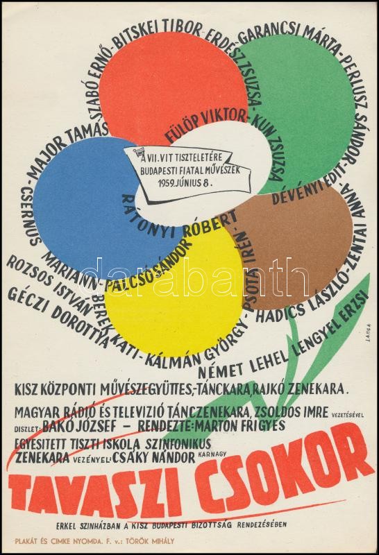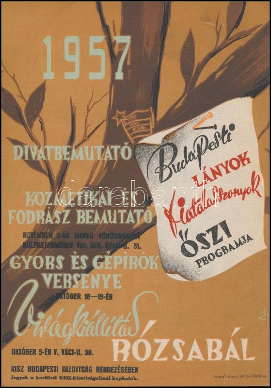 1957, 1959 A KISZ rendezvényeinek kisplakátja, 2 db (Rózsabál, Tavaszi... https://www.darabanth.com/hu/306-Gyorsarveres/306.0/Festmeny-mutargy-papirregiseg-egyeb/Plakat~500021/1957-1959-A-KISZ-rendezvenyeinek-kisplakatja-2-db-Rozsabal-Tavaszi-Csokor-24x17-cm~II1652757