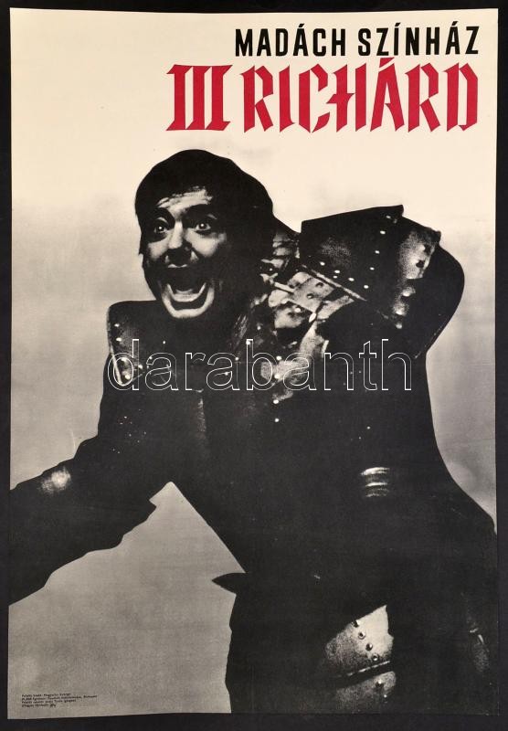 1969 Madách Színház III. Richárd előadásának plakátja, hajtásnyommal, ... https://www.darabanth.com/hu/306-Gyorsarveres/306.0/Festmeny-mutargy-papirregiseg-egyeb/Plakat~500021/1969-Madach-Szinhaz-III-Richard-eloadasanak-plakatja-hajtasnyommal-68x47-cm~II1653117
