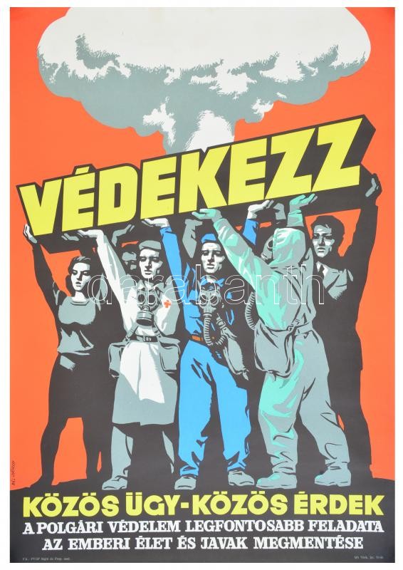 cca 1970 Pál György (1906-1986): "Védekezz" polgári védelem ... https://www.darabanth.com/hu/306-Gyorsarveres/306.0/Festmeny-mutargy-papirregiseg-egyeb/Plakat~500021/cca-1970-Pal-Gyorgy-1906-1986-Vedekezz-polgari-vedelem-propaganda-plakat-81x56-cm~II1647120