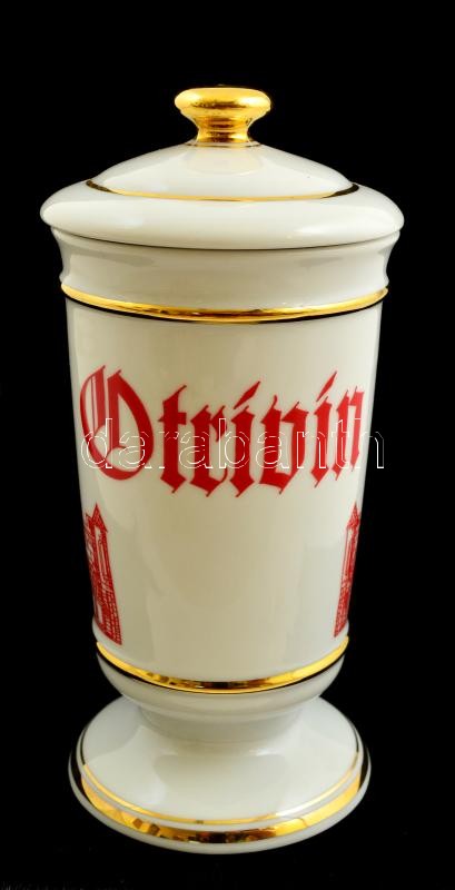 Leírás: Hollóházi patikai fedeles tégely Otrivin felirattal, jelzett, matricás, hibátlan, m:18 cm