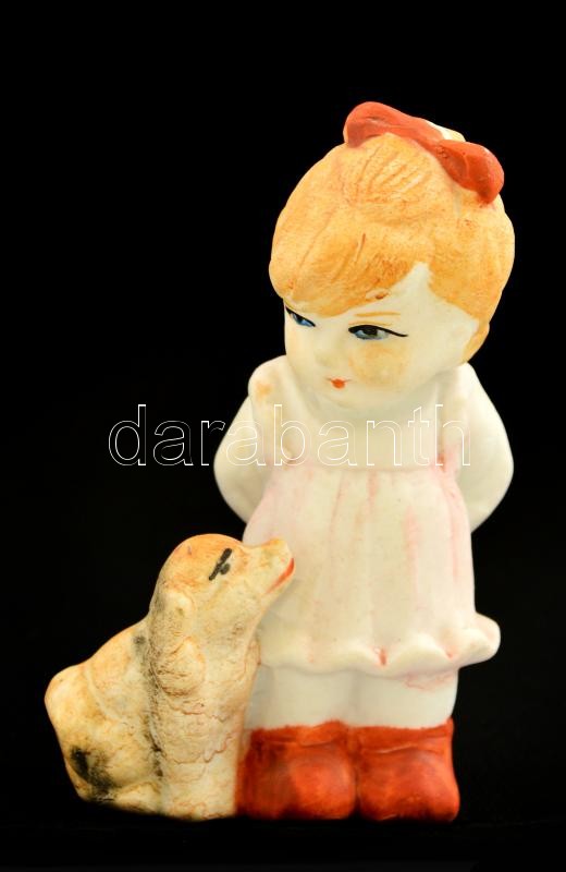 Leírás: Kislány kutyával, porcelán figura, kézzel festett, jelzés nélkül, hibátlan, m: 9 cm