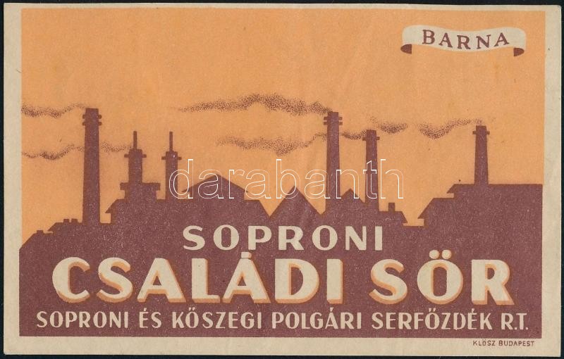 cca 1940 Soproni Családi Sör (barna), sörcímke, Soproni és Kőszegi Pol... https://www.darabanth.com/hu/306-Gyorsarveres/306.0/Festmeny-mutargy-papirregiseg-egyeb/Reklam~100023/cca-1940-Soproni-Csaladi-Sor-barna-sorcimke-Soproni-es-Koszegi-Polgari-Serfozdek-Klos~II1652694