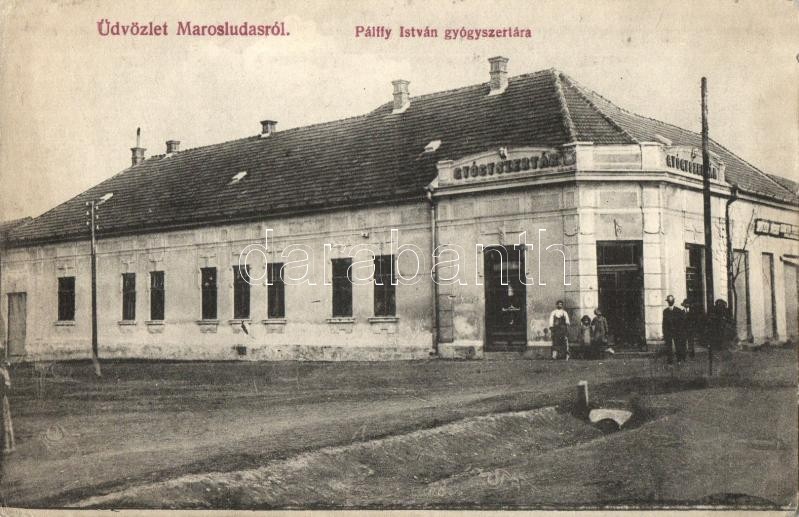 Marosludas, Ludus; Pálffy István gyógyszertára. Szilágyi Arthur kiadás... https://www.darabanth.com/hu/306-Gyorsarveres/306.0/Kepeslapok/Erdely~300006/Marosludas-Ludus-Palffy-Istvan-gyogyszertara-Szilagyi-Arthur-kiadasa-pharmacy-Rb~II1653256