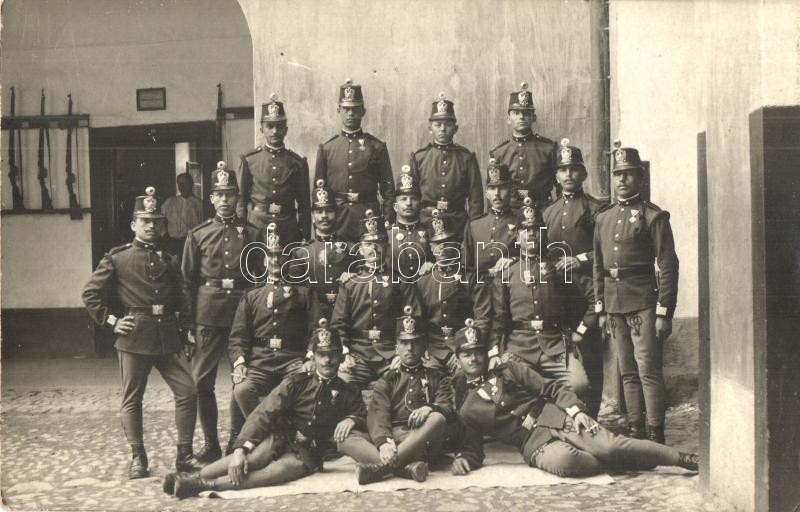 Leírás: 6 db RÉGI katonai fotó képeslap vegyes minőségben, csoportképek / 6 pre-1945 military photo postcards in mixed quality, group photos
