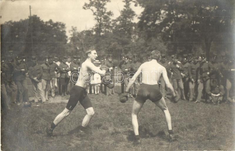 Leírás: Első világháborús katonai lap, box meccs a harcok közötti időben / WWI K.u.k. military, box match in between battles. photo