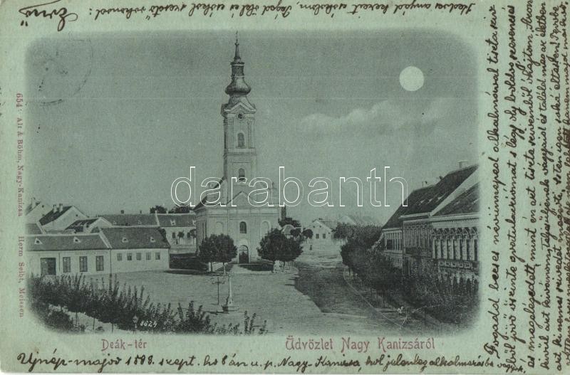1899 Nagykanizsa, Deák tér, templom. Alt & Böhm kiadása (EB) https://www.darabanth.com/hu/306-Gyorsarveres/306.0/Kepeslapok/Magyarorszag~300005/1899-Nagykanizsa-Deak-ter-templom-Alt-Bohm-kiadasa-EB~II1654173