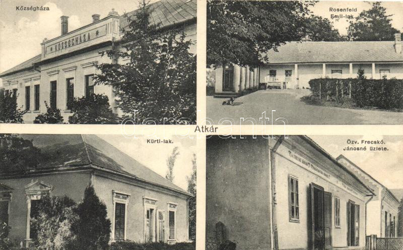 Atkár, Községháza, Rosenfeld Emil lak, Kürtli lak, Özv. Frecskó Jánosn... https://www.darabanth.com/hu/306-Gyorsarveres/306.0/Kepeslapok/Magyarorszag~300005/Atkar-Kozseghaza-Rosenfeld-Emil-lak-Kurtli-lak-Ozv-Frecsko-Janosne-uzlete~II1326868