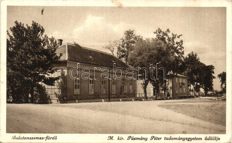 Balatonszemes-fürdő, M. kir. Pázmány Péter Tudományegyetem üdülője (EK... https://www.darabanth.com/hu/306-Gyorsarveres/306.0/Kepeslapok/Magyarorszag~300005/Balatonszemes-furdo-M-kir-Pazmany-Peter-Tudomanyegyetem-uduloje-EK~II1504554
