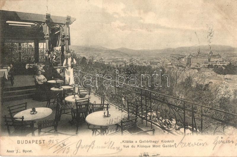 Leírás: Budapest I. Gellérthegy, Kilátás a Kioszkról, vendéglő pincérrel, látkép, Auer J. (ázott / wet damage)