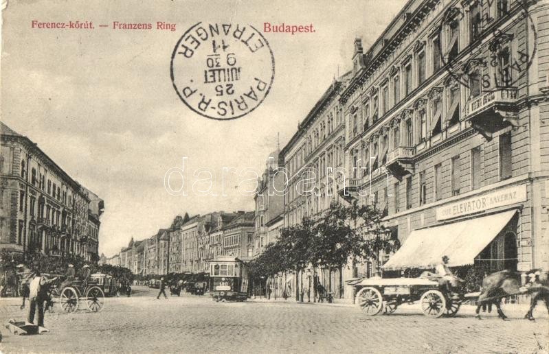 Budapest IX. Ferenc körút, 140-es számú villamos, Café Elevator kávéhá... https://www.darabanth.com/hu/306-Gyorsarveres/306.0/Kepeslapok/Magyarorszag~300005/Budapest-IX-Ferenc-korut-140-es-szamu-villamos-Cafe-Elevator-kavehaz-EK~II1563294