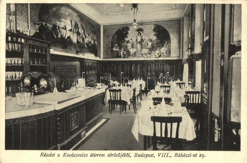Budapest VIII. Kovácsevics étterem és söröző, belső. Rákóczi út 29. (... https://www.darabanth.com/hu/306-Gyorsarveres/306.0/Kepeslapok/Magyarorszag~300005/Budapest-VIII-Kovacsevics-etterem-es-sorozo-belso-Rakoczi-ut-29-EK~II1578180