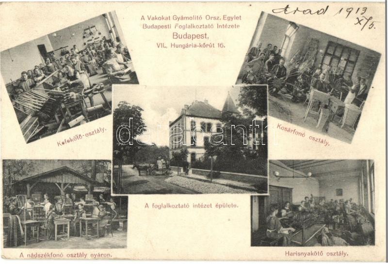 Budapest VIII. Vakokat Gyámolító Országos Egylet Budapesti Foglalkoztató Intézete; Kefekötő, kosárfonó, harisnyakötő és nádszékfonó osztályok, belső. Hungária körút 16. (EK)