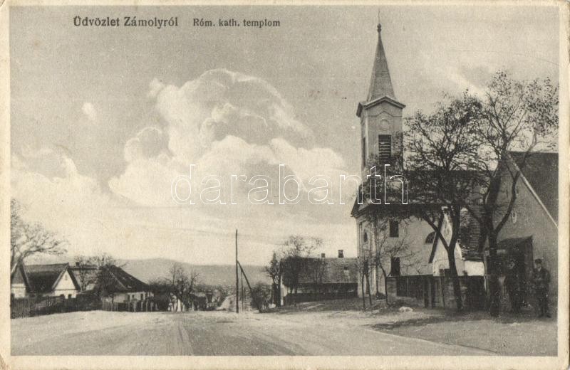 Zámoly, utcakép Római katolikus templommal (EK) https://www.darabanth.com/hu/306-Gyorsarveres/306.0/Kepeslapok/Magyarorszag~300005/Zamoly-utcakep-Romai-katolikus-templommal-EK~II1653660