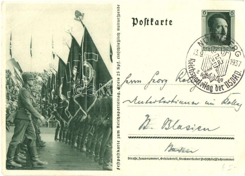 1937 Reichsparteitag Nürnberg / Nazy Party propaganda, "Reichspar... https://www.darabanth.com/hu/306-Gyorsarveres/306.0/Kepeslapok/Propaganda-politika~300102/1937-Reichsparteitag-Nurnberg-Nazy-Party-propaganda-Reichsparteitag-der-NSDAP-So-Stpl-6-Ga-~II1654864