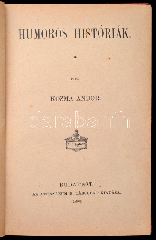 Kozma Andor: Humoros históriák. Athenaeum olvasótára. Bp., 1896, Athen... https://www.darabanth.com/hu/306-Gyorsarveres/306.0/Konyvek/Konyvek-Egyeb-ritkasagok~500018/Kozma-Andor-Humoros-historiak-Athenaeum-olvasotara-Bp-1896-Athenaeum-Kiadoi-festett-ill~II1656098