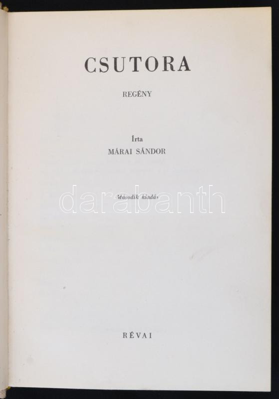 Márai Sándor: Csutora. Bp., é.n., Révai, 211 p. Második kiadás. Kiadói... https://www.darabanth.com/hu/306-Gyorsarveres/306.0/Konyvek/Konyvek-Egyeb-ritkasagok~500018/Marai-Sandor-Csutora-Bp-en-Revai-211-p-Masodik-kiadas-Kiadoi-egeszvaszon-kotesb~II1504212