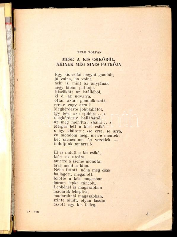 Mesék, történetek. Negyvenöt magyar író a gyermekeknek. Színes melléklettel. Szerk.: Hárs László, Kolozsvári Grandpierre Emil. F. Győrffy Anna, Szecskó Tamás rajzaival. A borítót Szecskó Tamás rajzolta. Bp.,é.n., Ifjúsági Könyvkiadó.Kiadói illusztrált félvászon-kötés, kopottas borítóval, a címoldallal és egy illusztráció hiányzik, egy illusztráció kijár.