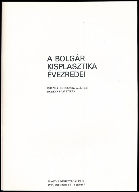 A bolgár kisplasztika évezredei. Istenek, héroszok, szentek, modern plasztikák. Szerk.: Földes Mária, Tóth Antal. FordÃtotta Bajcseva Szmezsna. Bp., 1984, Magyar Nemzeti Galéria. Kiadói papÃrkötés.