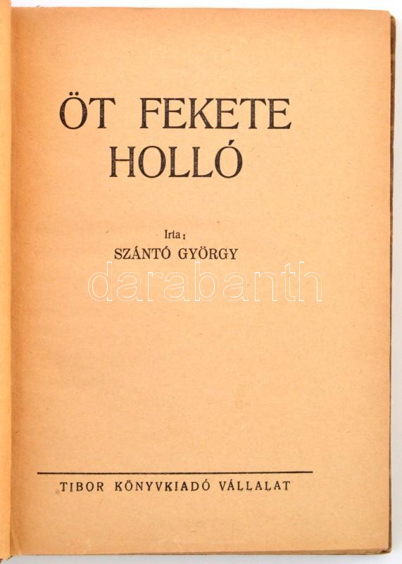 Szántó György: Öt fekete holló. Budapest, é.n., Tibor Könyvkiadó Válla... https://www.darabanth.com/hu/306-Gyorsarveres/306.0/Konyvek/Konyvek-es-papirregisegek-rendkivul-alacsony-kikialtasi-aron~500017/Szanto-Gyorgy-Ot-fekete-hollo-Budapest-en-Tibor-Konyvkiado-Vallalat-Kiadoi-felvas~II1443897