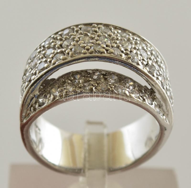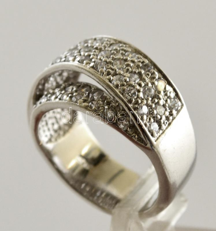 Leírás: Ezüst(Ag) modern apró kövekkel kirakott gyűrű, jelzett, méret: 57, bruttó: 9,5 g