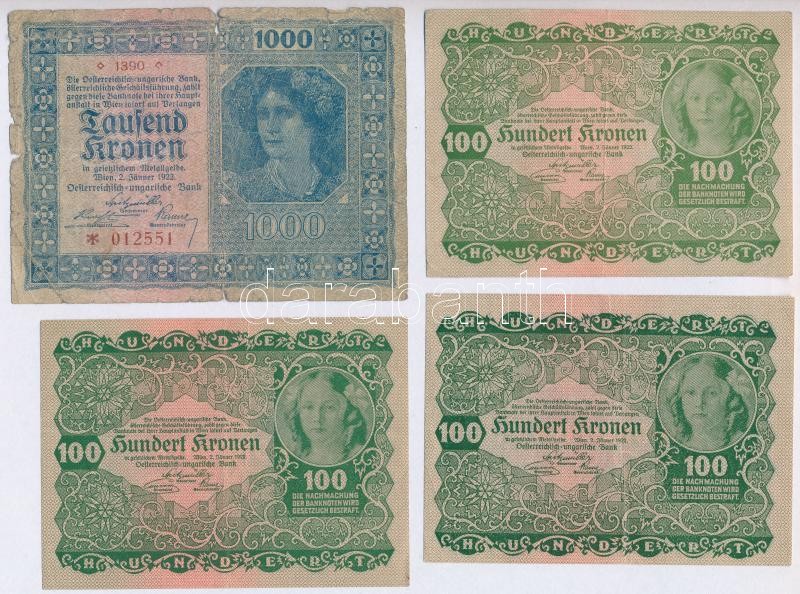 Ausztria 1922. 7db-os korona bankjegy tétel, benne 1-2-20-100-1000K címletek T:II-IV