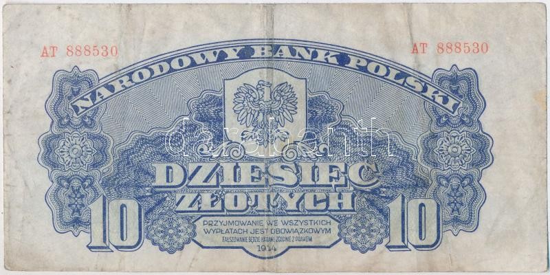Poland 1944. 10 Zlotych C:F,VG https://www.darabanth.com/hu/306-Gyorsarveres/306.0/Numizmatika/Kulfoldi-bankjegyek~200012/Lengyelorszag-1944-10Zl-TIII-III---Poland-1944-10-Zlotych-CF-VG~II1648194