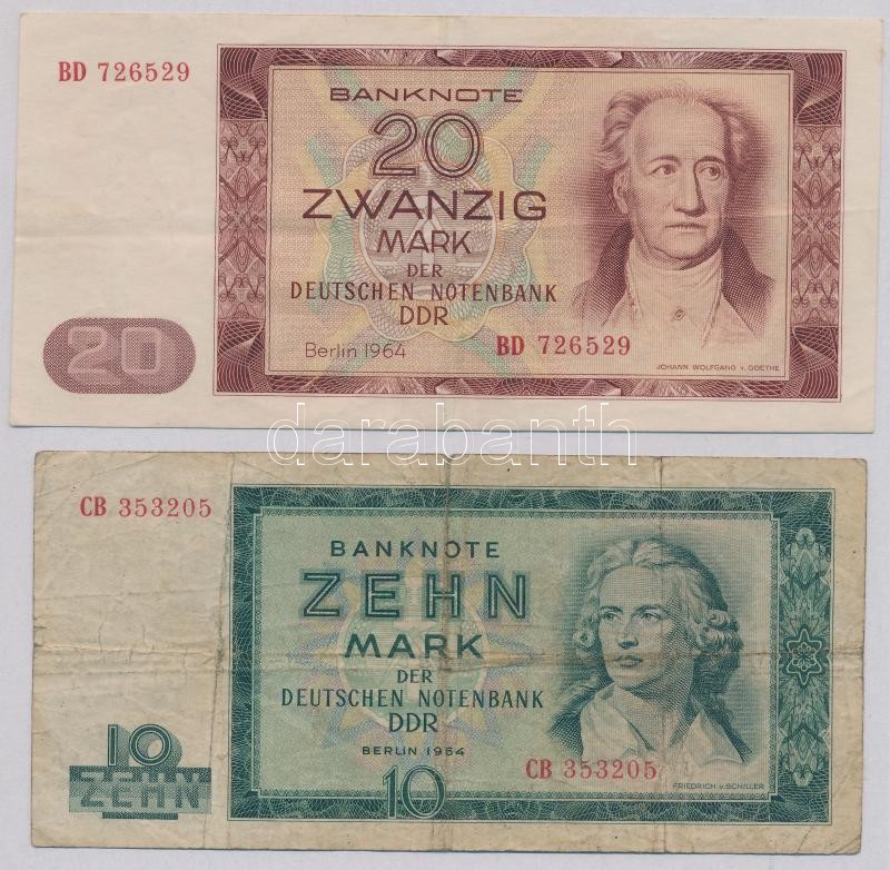 GDR 1... https://www.darabanth.com/hu/306-Gyorsarveres/306.0/Numizmatika/Kulfoldi-bankjegyek~200012/NDK-1964-10M-4x-plus-1964-20M-TIII-nehany-darab-szep-papirral--GDR-1964-10-Mark-4x-plus-1964-~II1657051