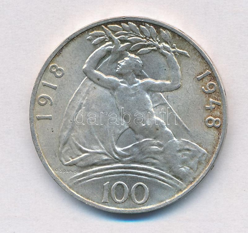 Leírás: Csehszlovákia 1948. 100K Ag "Függetlenség" T:1-,2 Czechoslovakia 1948. 100 Korun Ag "Independence" C:AU,XF