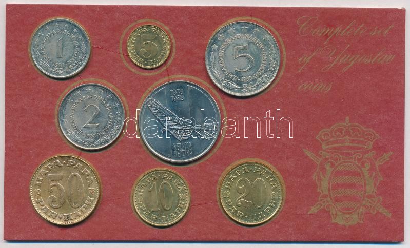 Leírás: Jugoszlávia 1979-1983. 5p-10D (8xklf) forgalmi sor karton lapon, lezárt csomagolásban, közte 1983. 10D Cu-Ni "A neretvai csata 40. évfordulója" emlékkiadás T:1-,2