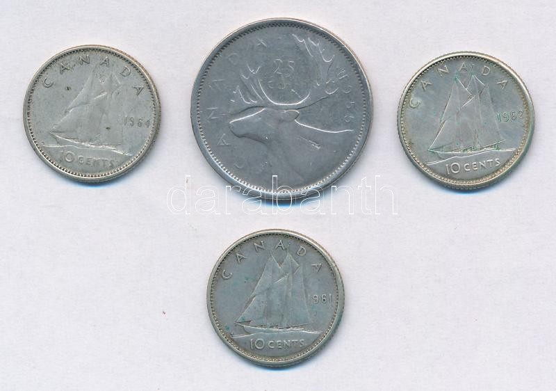 Leírás: Kanada 1955. 25c Ag + 1961-1964. 10c Ag (3xklf) T:2,2-