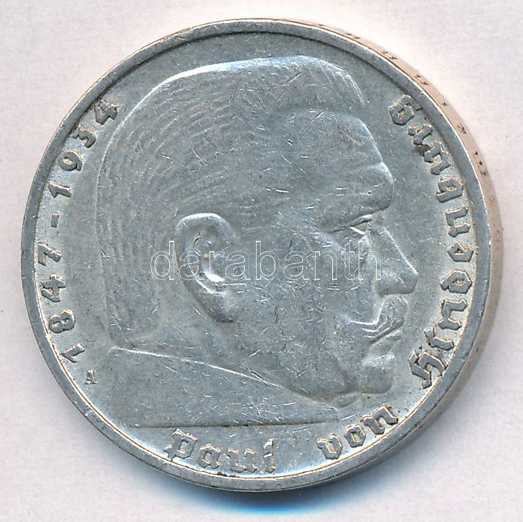 Germa... https://www.darabanth.com/hu/306-Gyorsarveres/306.0/Numizmatika/Kulfoldi-fem-es-ezustpenzek~200013/Nemet-Harmadik-Birodalom-1936A-5M-Ag-Hindenburg-T2--German-Third-Reich-1936A-5-Marks-Ag-Hindenb~II1652708