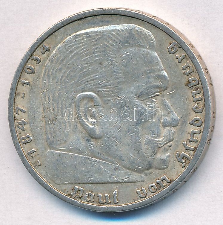 Germa... https://www.darabanth.com/hu/306-Gyorsarveres/306.0/Numizmatika/Kulfoldi-fem-es-ezustpenzek~200013/Nemet-Harmadik-Birodalom-1937A-5M-Ag-Hindenburg-T2--German-Third-Reich-1937A-5-Marks-Ag-Hindenb~II1652703