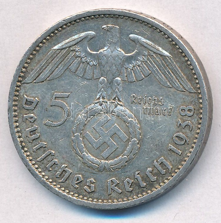 Német Harmadik Birodalom 1938A 5M Ag "Hindenburg" T:2 patina... https://www.darabanth.com/hu/306-Gyorsarveres/306.0/Numizmatika/Kulfoldi-fem-es-ezustpenzek~200013/Nemet-Harmadik-Birodalom-1938A-5M-Ag-Hindenburg-T2-patina--German-Third-Reich-1938A-5-Marks-Ag-~II1652714