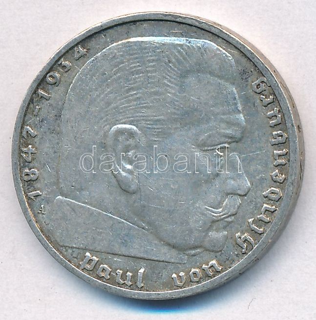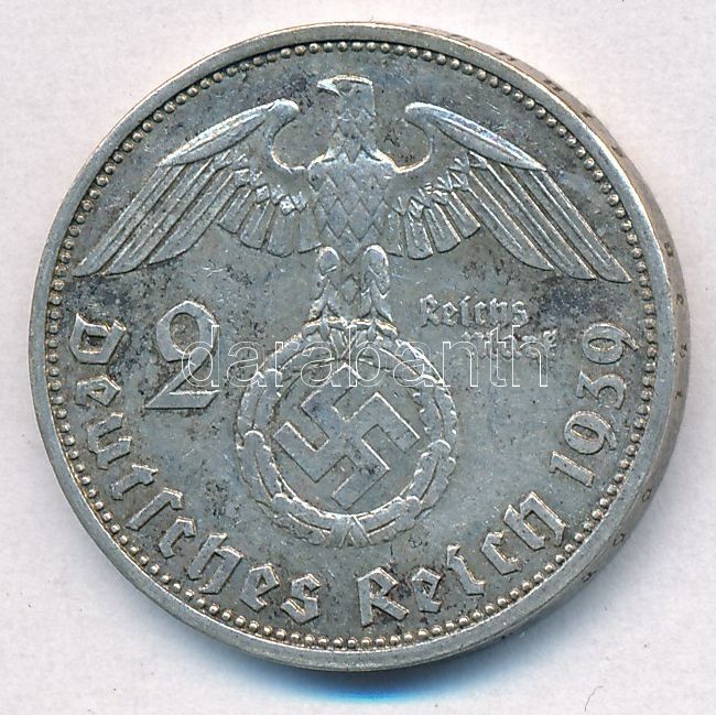 Germa... https://www.darabanth.com/hu/306-Gyorsarveres/306.0/Numizmatika/Kulfoldi-fem-es-ezustpenzek~200013/Nemet-Harmadik-Birodalom-1939A-2M-Ag-Hindenburg-T2--German-Third-Reich-1939A-2-Mark-Ag-Hindenbu~II1652726