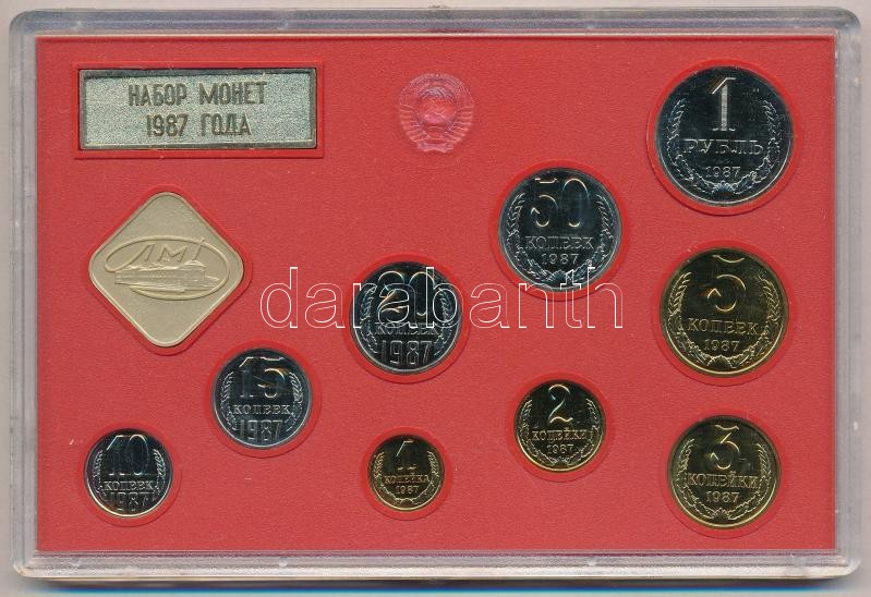 Szovjetunió 1987. 1k-1R (9xklf) forgalmi szett + "Leningrád verde" emlékérem eredeti dísztokban T:1 Soviet Union 1987. 1 Kopek - 1 Ruble (9xdiff) coin set + "Leningrad mint" commemorative coin, all in original case C:UNC