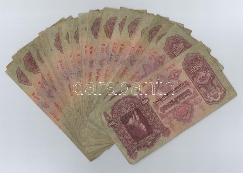 1930. 100P (30x) T:III,III- https://www.darabanth.com/hu/306-Gyorsarveres/306.0/Numizmatika/Magyar-bankjegyek~200007/1930-100P-30x-TIII-III-~II1657345